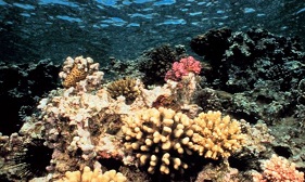 | Coral Reef- A mound or ridge made up of coral. A coral reef is home to many animlas and plants. | ![]() |