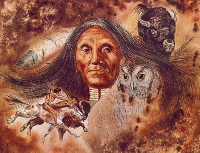 Final Project Proposal Recurring themes I came across in my research on metamorphosis are the themes of profound changes in character, including spiritual transformation, and the complete change of form through supernatural means such as shape shifting. The theme of spiritual transformation through the means of isolation, fasting and praying occurs repeatedly in different religions (Buddha, Moses, Jesus, Mohammed, Black Elk). The theme of shape shifting comes up repeatedly in classical mythology where the gods often assume the shapes of animals that shared their attributes or to seduce mortals, or change humans into plant or animal form, or to change their sexual gender. This theme also recurs in Native American mythology and spiritual practices. The concept I hope to communicate in this project is spiritual transformation through taking on the attributes of totem animals and spiritual guides through the metamorphosis of a vision quest. My attitude is one of playfulness and exploration. I’m intrigued by the concept of spiritual transformation and am approaching it from the perspective of a student and possible seeker. My intent is to be serious and playful, as well as educational and personal. The concepts that ties this all together are the concepts of spiritual transformation and shape shifting, or taking on the attributes of spiritual guides/animals through a vision quest. I’ll get my materials from the internet and from books on Native American spirituality, mythology and art as well as classical mythology and art. An artist whose work I admire in this area is Susan Seddon Boulet and I will try to locate books of her art work. Possible working titles include Vision Quest, Shaman or Awakening. The piece will probably be narrative. I’m not sure yet what the piece will look like. One possibility is taking an image of someone sleeping whose transformation occurs through her dreams. Another possibility is to show the spiritual seeker taking on the attributes of their totem animals through her vision quest. |